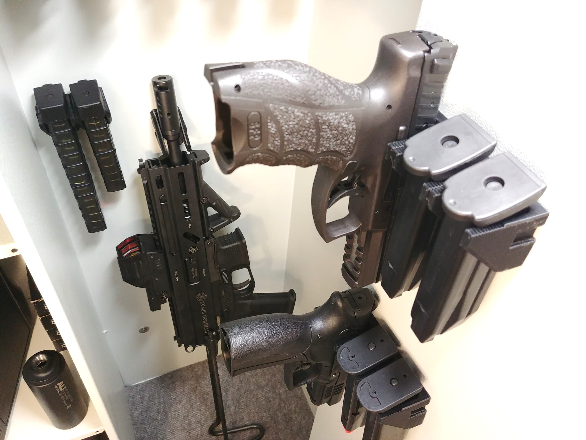 MHS - Magnetic Holder System - to rozwiązanie, które zaoszczędzi miejsce w Twojej szafie na broń. Jest zaprojektowany dla każdego posiadacza broni palnej, który chce na nowo zorganizować miejsce w swojej szafie. Dzięki temu rozwiązaniu broń i magazynki do niej można zamontować w miejsca, które do tej pory były niewykorzystane.